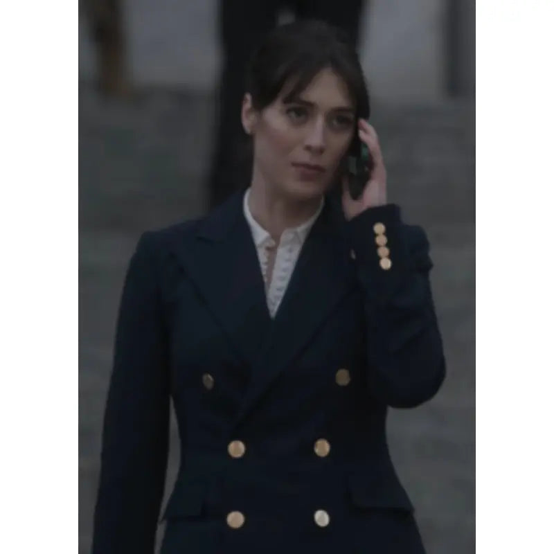 Recreation - Lizzy Caplan Zero Day Alexandra Mullen E01 Wool Crepe Blazer Specification: This Is A Recreated Product Material: Wool  Inner: Soft Lining Color: Navy Blue Closure: Button Cuffs: Hem Cuffs