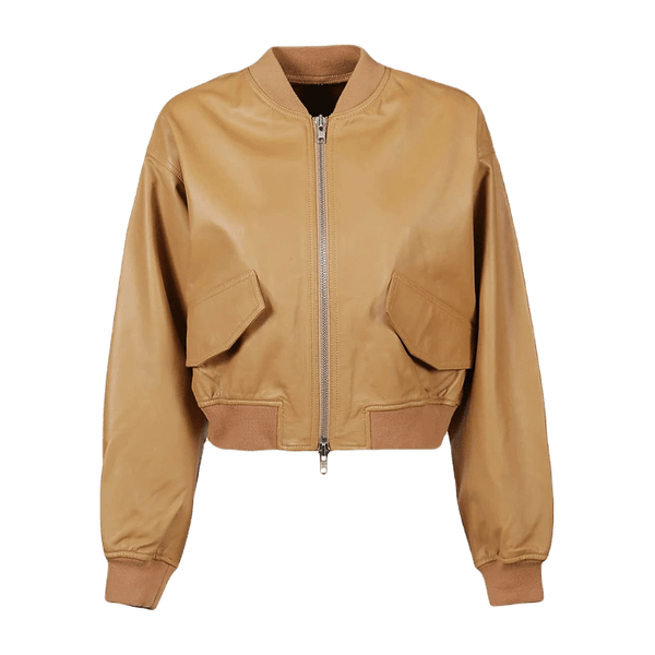 This stylish tan brown bomber jacket for women is crafted from premium sheep leather, offering both comfort and sophistication. With a zipper closure, it's perfect for colder seasons like winter and autumn, ensuring you stay warm and fashionable.