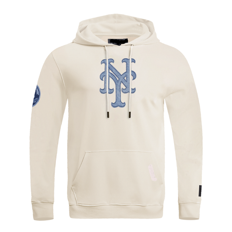 NFL 2024 New York Mets Varsity Blues Hoodie   Specification: Material: Fleece Collar: Hooded Collar Closure: Pullover Closure Cuffs: Rib Knitted Cuffs Color: Off White
