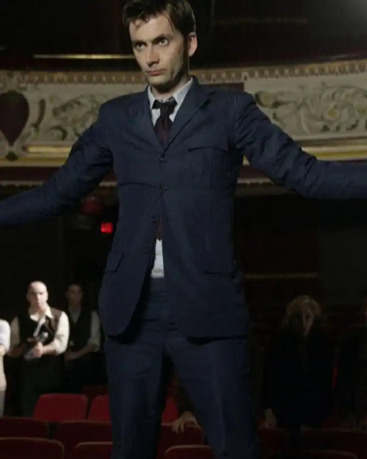 Doctor Who Season 3 Tenth Doctor Blue Suit Step into the iconic style of David Tennant with this Tenth Doctor Blue Suit from Doctor Who Season 3. Tailored from premium suiting fabric and fully lined with soft viscose, the jacket features a smart lapel collar, full-length sleeves with buttoned cuffs,...