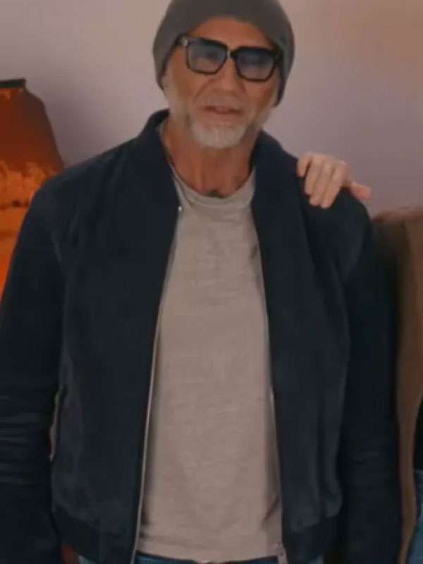 Channel the rugged style of Dave Bautista with this iconic bomber jacket from *In the Lost Lands*. Inspired by his character Boyce, this jacket features a rich blue hue crafted from premium suede fabric. The ribbed collar and cuffs offer a snug fit, while the zipper closure ensures effortless wear. Designed for comfort and flair, it includes multiple pockets for practicality. Whether you're going for an edgy street look or casual outerwear, this piece delivers standout appeal.