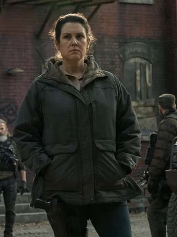 Embrace the commanding presence of Kathleen Coghlan from *The Last of Us* Season 1 with this Melanie Lynskey-inspired Grey Hooded Jacket. Crafted from durable cotton fabric and lined with soft viscose, this jacket blends style and utility for everyday wear.