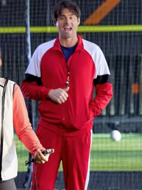 Sport the bold, vibrant look of Kristoffer Polaha in this red track suit from *A Winning Team* (2023). A perfect combination of style and comfort.
