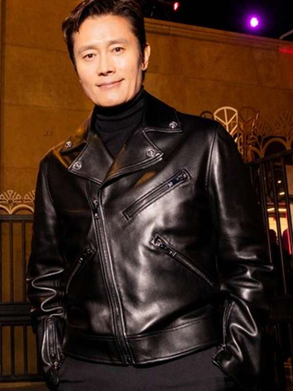 Lee Byung-hun Squid Game S02 Black Leather Jacket Inspired by Lee Byung-hun's character in Squid Game S02, this sleek black biker leather jacket features a lapel collar, zipper closure, and multiple pockets for added functionality. Specifications: Inspired By: Lee Byung-hun External Material: Real Leather Inner Lining: Viscose Lining Front: Zipper...