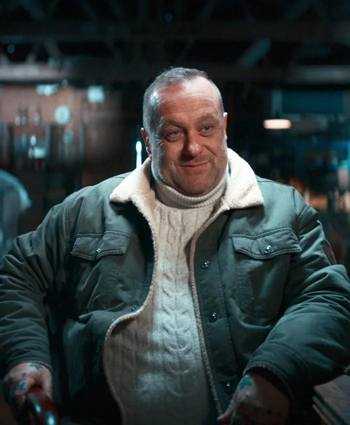 The Diamond Heist S01 Lee Wenham Green Shearling Jacket This green shearling jacket from *The Diamond Heist* Season 1, worn by Lee Wenham, combines rugged style with cozy comfort. Crafted from parachute fabric with a soft shearling lining, it features a shearling shirt collar, full-length sleeves, open hem cuffs, and...