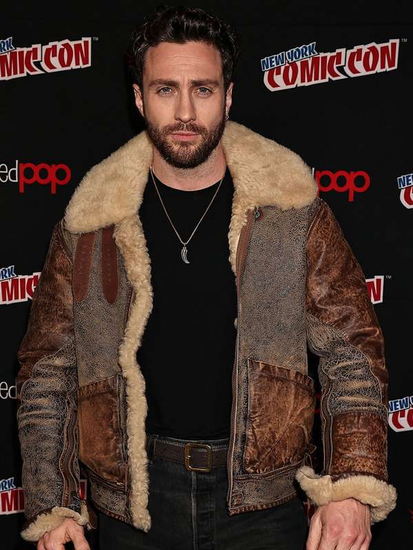 Aaron Taylor-Johnson Comic Con 2024 Shearling Leather Jacket