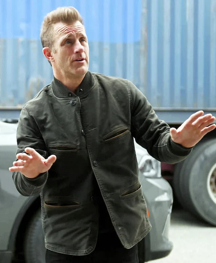 Alert Missing Persons Unit S03 Jason Grant Green Bomber Jacket This green bomber jacket from *Alert Missing Persons Unit* Season 3, worn by Scott Caan as Jason Grant, is crafted from cotton fabric with a comfortable viscose lining. It features full-length sleeves, rib knitted collar and cuffs, four side pockets...