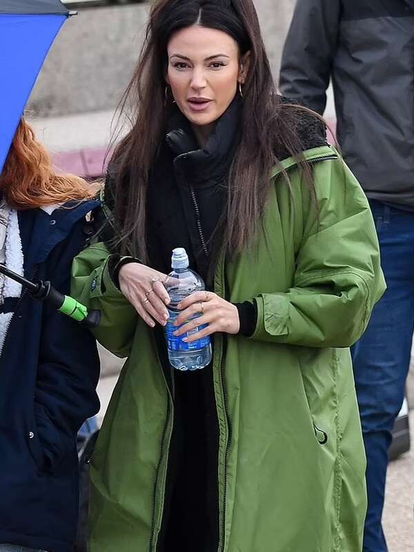 Step into the style of Michelle Keegan as Erin Croft in *Brassic* Season 5 with this cozy green hooded trench coat.