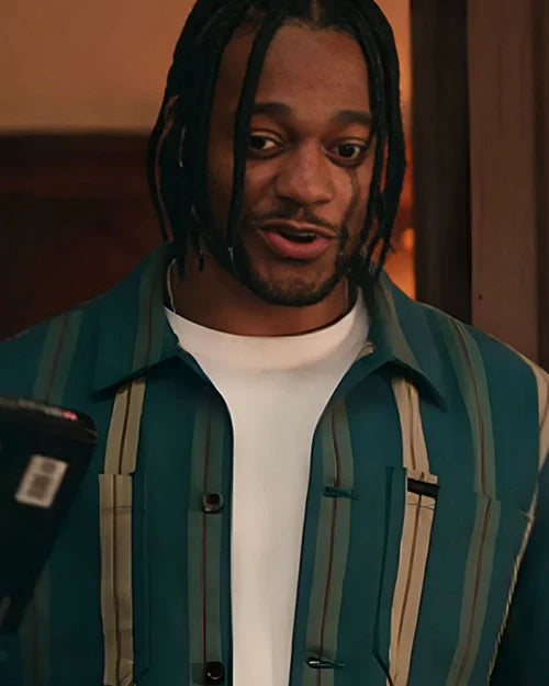 Discover the stylish green striped shirt worn by Christopher Meyer in *The Sex Lives of College Girls* Season 03. Made from premium cotton fabric, this shirt features a classic shirt-style collar, buttoned closure, and practical chest pockets. Perfect for a casual yet polished look.