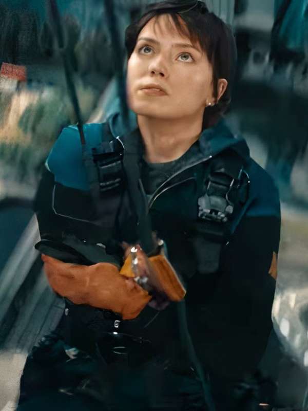 Joey Locke Cleaner 2025 Movie Daisy Ridley Blue and Black Jacket