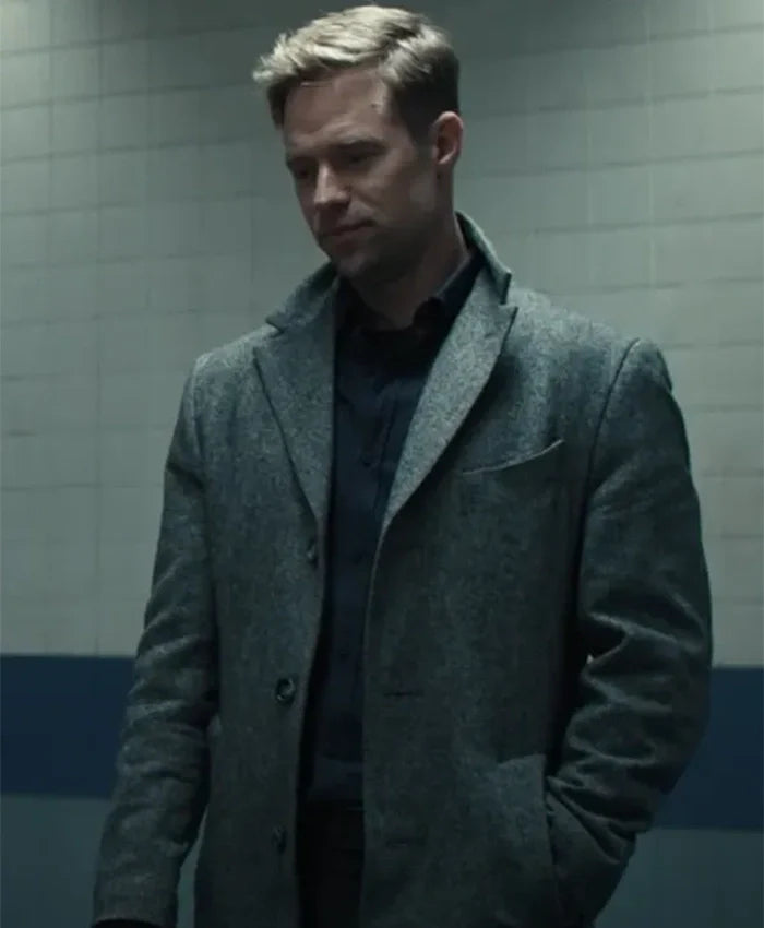 Shop the stylish David O’Donnell Wool Grey Coat from Reacher Season 02, worn by Shaun Sipos. This coat is crafted from premium wool fabric with viscose lining, offering both comfort and style with a lapel collar and buttoned closure.