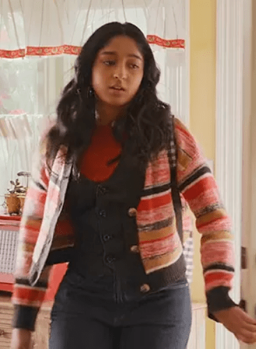Maitreyi Ramakrishnan Never Have I Ever S03 Devi Vishwakumar Multicolor Wool Sweater