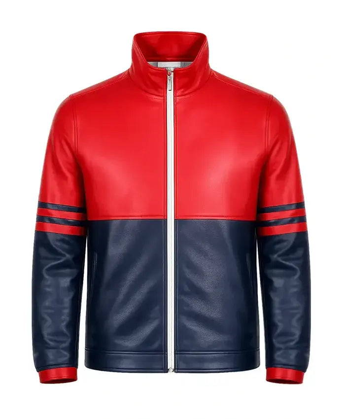 Dual-Tone Red and Navy Blue Leather Jacket