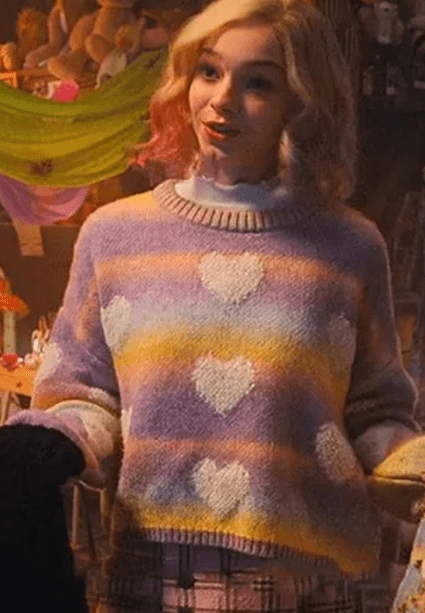 Bianca Barclay TV Series Wednesday 2022 Emma Myers Multicolored Heart Sweater