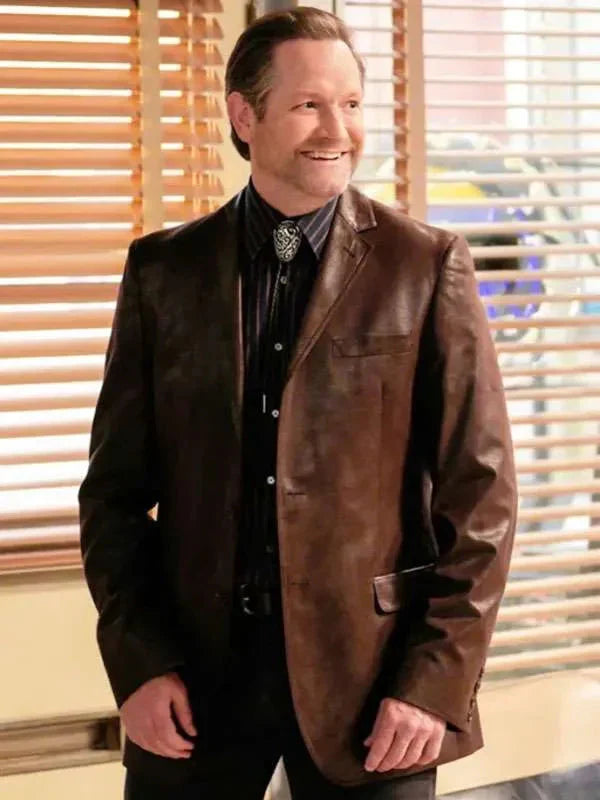 Step into sharp, TV-inspired style with the Fred Fagenbacher Georgie and Mandy's First Marriage Leather Blazer. Worn by Fred Fagenbacher in the popular series Georgie and Mandy’s First Marriage, this men’s leather blazer combines refined tailoring with a bold, classic vibe.