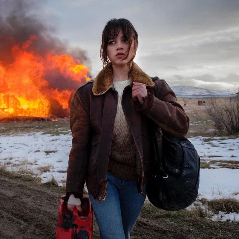 Anima Hurry Up Tomorrow 2025 Jenna Ortega Brown Fur Collar Leather Jacket