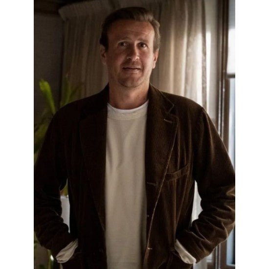 Jimmy Shrinking 2023 Jason Segel Brown BlazerSpecifications: Material: Corduroy Fabric Internal: Viscose Lining Collar: Lapel Style Collar Front: Button Closure Sleeves: Long Sleeves Cuffs: Button Cuffs Pockets: One Inside & Three Outside Pockets Color: Brown