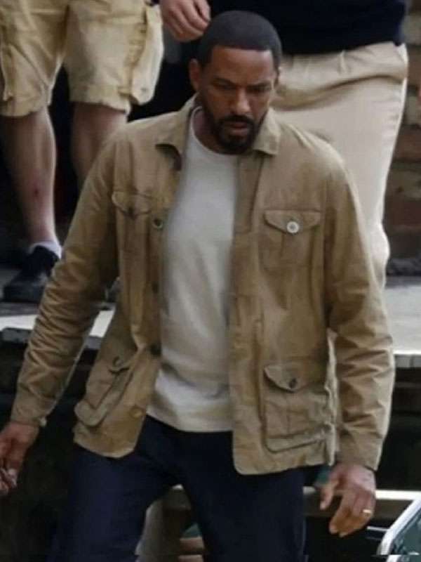 Step into effortless style with the Laz Alonso Fountain Of Youth Patrick Murphy Jacket. Worn by Laz Alonso, this beige cotton jacket offers a clean and refined look suitable for any casual outing. Made from durable cotton fabric with a soft viscose lining, it ensures comfort and breathability. The buttoned front and shirt-style collar give it a relaxed, classic touch, while the full-length sleeves with buttoned cuffs add a sharp finish. Multiple spacious pockets at the front and inside provide practicality without compromising style.