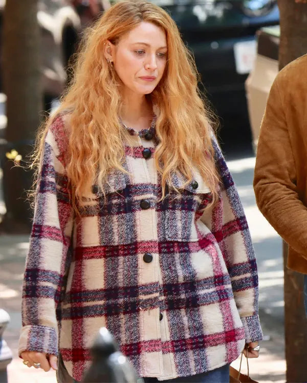 Blake Lively 2024 Movie Boom It Ends With Us Lily Plaid Wool Jacket