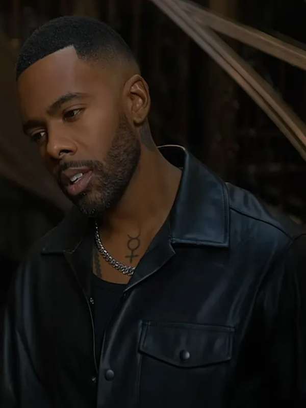 This black leather jacket, inspired by Mario from *Style Me for Christmas* 2024, offers a blend of sophistication and edge. Featuring a buttoned closure, shirt-style collar, and full-length sleeves, it's perfect for both casual and stylish occasions.
