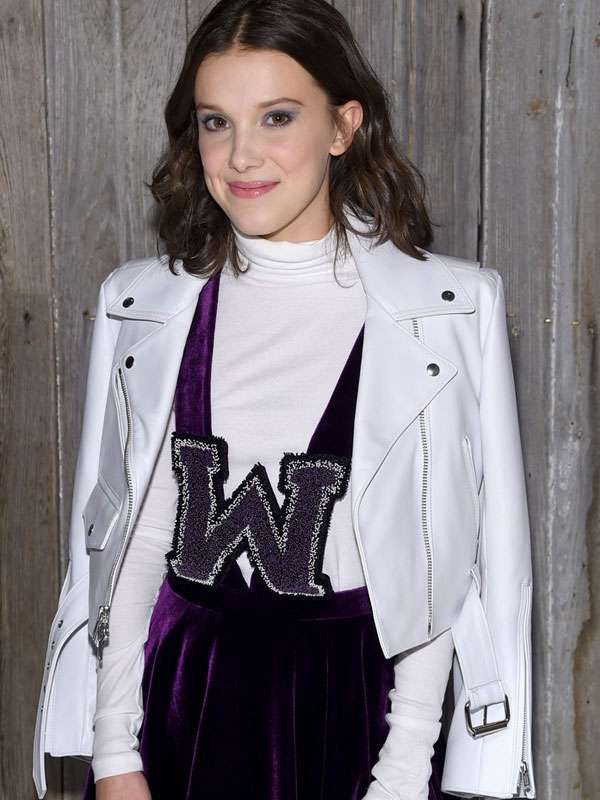 Millie Bobby Brown NYFW White Leather Jacket