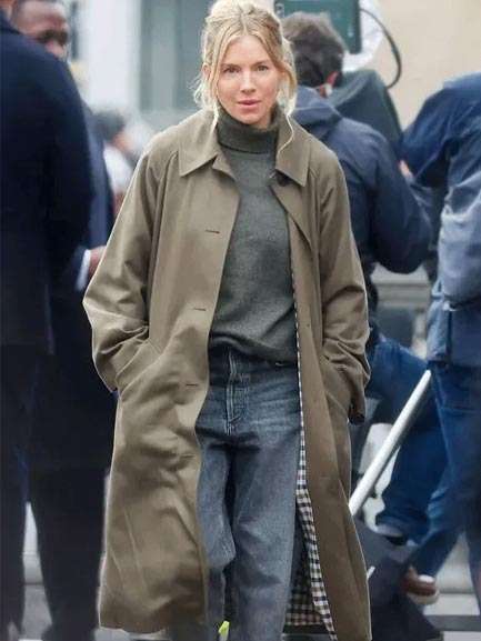 Channel effortless sophistication with the Sienna Miller Green Trench Coat, inspired by her chic New York City street style. Made from high-quality cotton fabric and lined with soft viscose, this trench coat is ideal for layering during transitional seasons. It features a classic buttoned closure and lapel collar for a timeless silhouette. With two spacious front pockets and one inside, it combines elegance with everyday practicality. A perfect addition to elevate your outerwear collection.