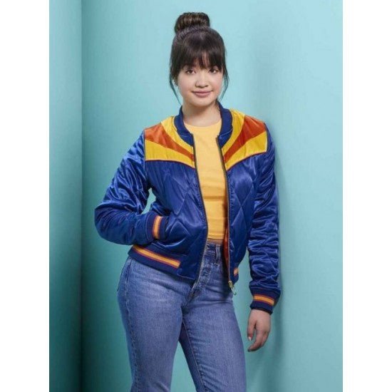 Mandy Coleman Movie Prom Pact 2023 Peyton Elizabeth Lee Blue Satin JacketSpecifications: Material: Satin Fabric Inner: Soft Viscose Lining Collar: Rib-Knitted Collar Front: Zipper Closure Sleeves: Long Sleeves Cuffs: Rib Knitted Cuffs Pockets: Two Outside & One Inside Color: Blue