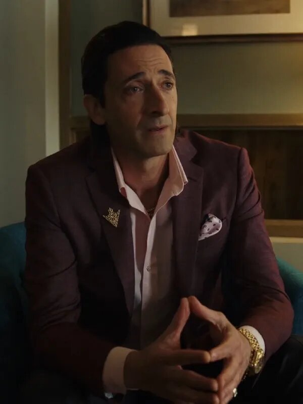 Sterling Frost Jr TV Series Poker Face 2023 Adrien Brody Maroon Blazer