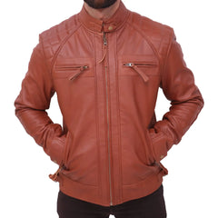 Quilted Men's Brown Vintage Moto Riding Leather Jacket