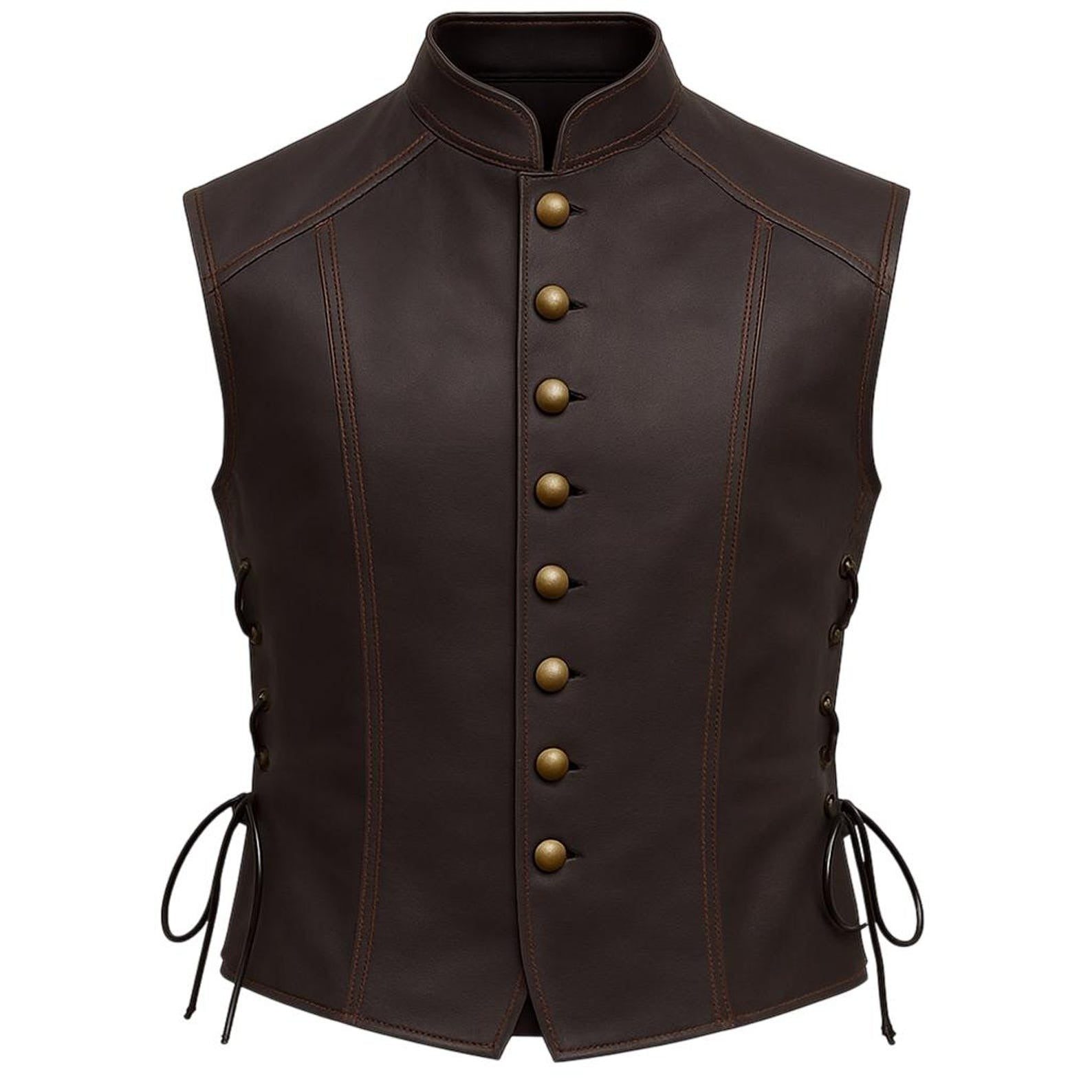 Men’s Brown Leather Jacket With Band CollarThis Men's Brown Leather Jacket features a slee...$182.00