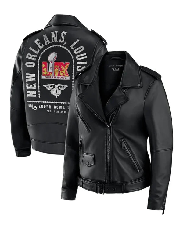 New Orleans Louisiana Super Bowl LIX (59) Black Leather Biker Jacket