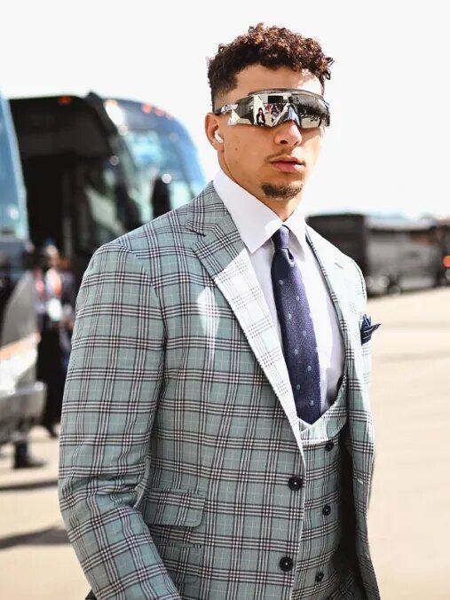 Patrick Mahomes Super Bowl LVII Halftime Light Sea Green Checkered Plaid Three Piece Suit
