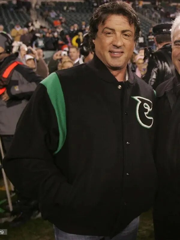 Sylvester Stallone Philadelphia Eagles Black Varsity Jacket