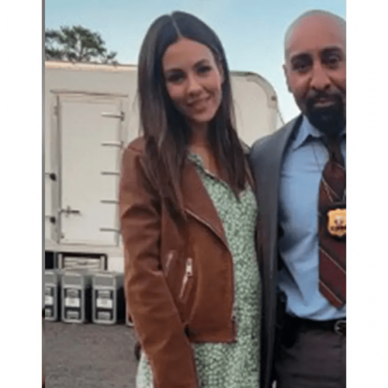 Annie The Tutor 2023 Victoria Justice Brown Suede Biker Jacket