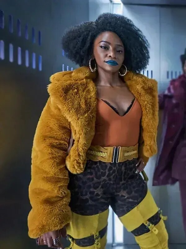 Yo-Yo They Cloned Tyrone 2023 Teyonah Parris Faux Fur Orange Jacket