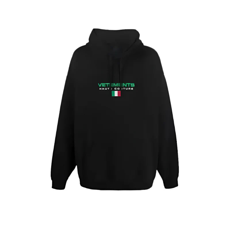 Recreation – Vetement's Logo-Print Black Pullover Hoodie For Men & Women Specification: This Is A Recreated Product Material: Fleece Inner: Soft Lining Collar: Hooded Collar Front: Pullover Closure Color: Black